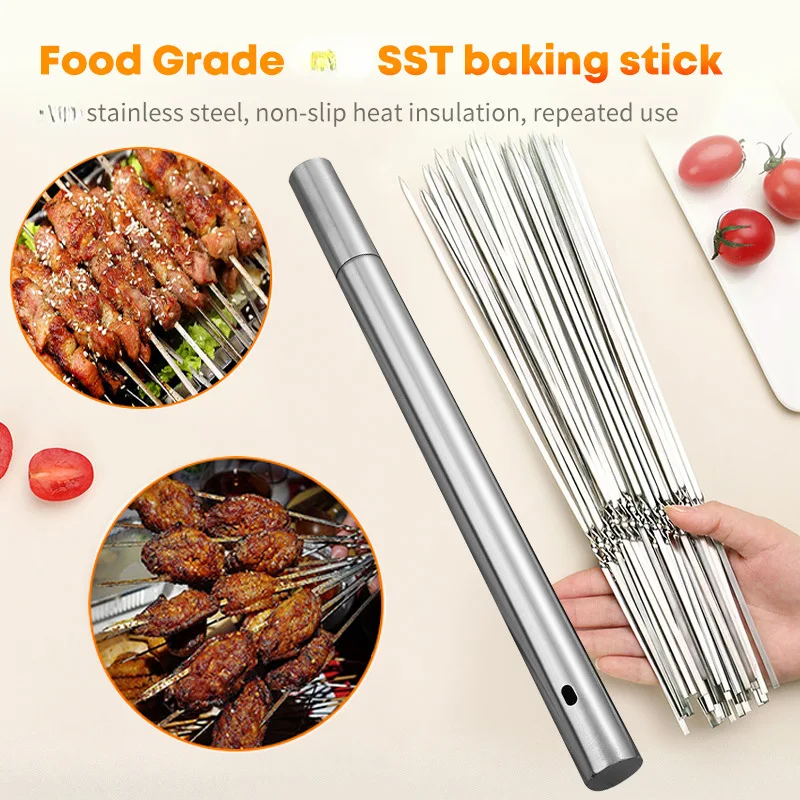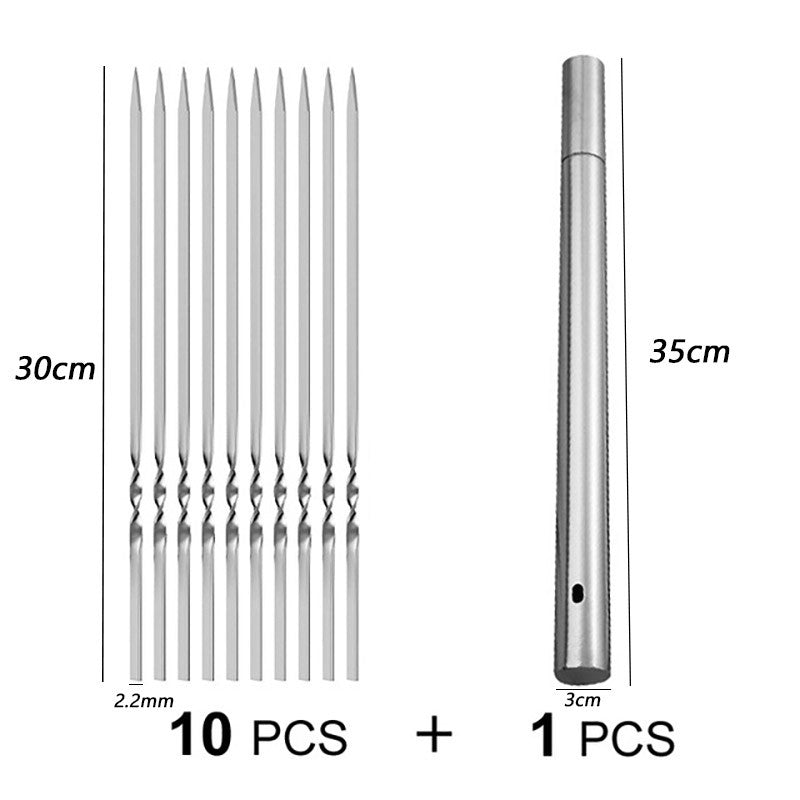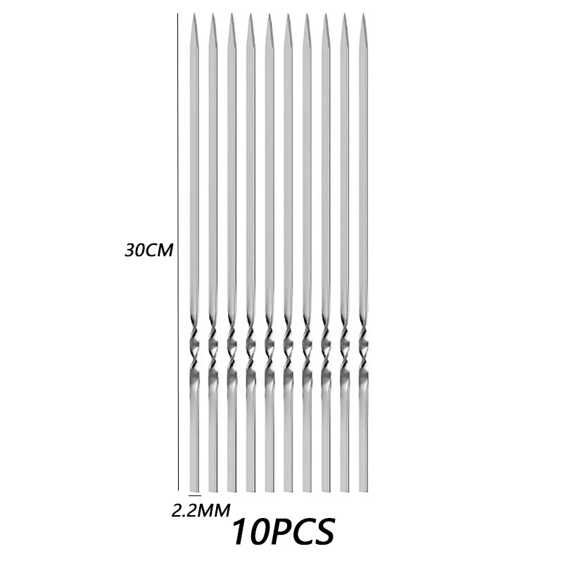 Espeto de churrasco de aço inoxidável, 10/20 peças, espetos de churrasco reutilizáveis, bastão de ferro para acampamento ao ar livre, ferramentas de piquenique, ferramentas de cozinha