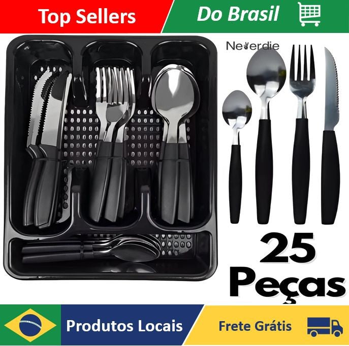 Além de servir facilita o armazenamento do conjunto que pode ser guardado no próprio porta talher.